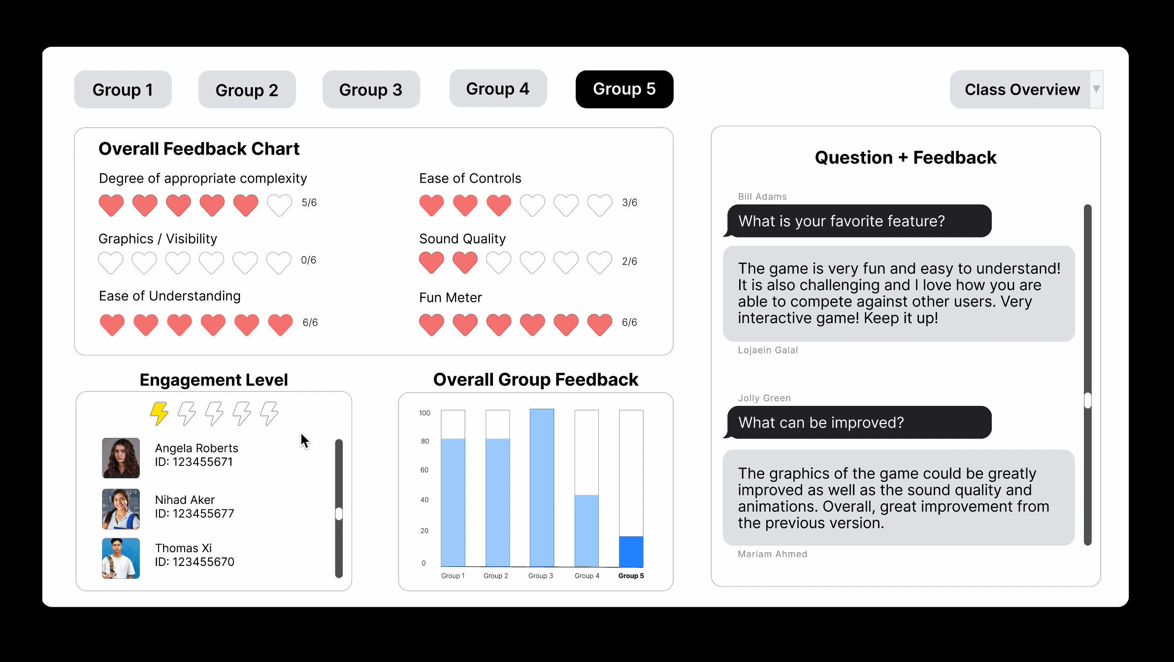 Create a student & teacher dashboard that prioritizes visual feed back, build circulative discussions for students and allows easy facilitation for the instructor.